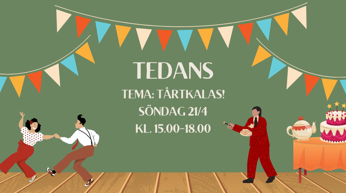 Söndag den 21 april mellan kl.15-18 är det dags för Tedans med tema tårtkalas! Vi bakar tårtor, ställer fram kaffet och blåser ballonger för att fira våren och solen ![]()
